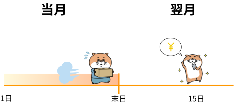 月末締めの翌月15日に指定口座へ振込されます。